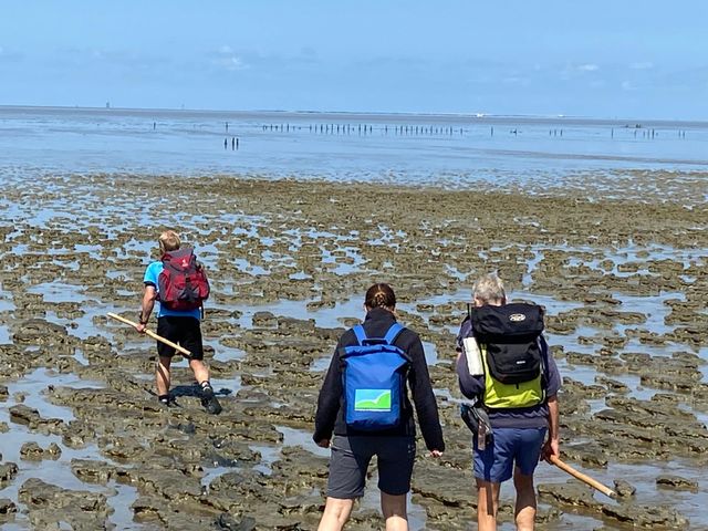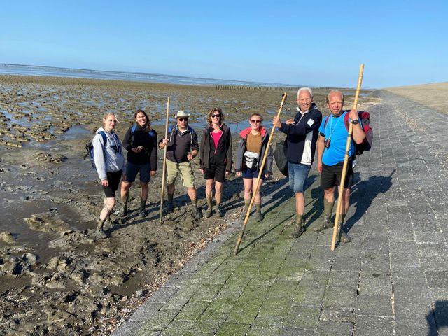 Op 11 juni was de dag daar en stond een kleine delegatie van ambtenaren en een bestuurder klaar in Wierum om het Wad op te gaan en het geschenk te verzilveren. Onder begeleiding van de wadloopgidsen Folkert Bouma en Harry Feenstra werden de deelnemers meegenomen naar de Engelsmanplaat om op een actieve wijze in de praktijk te leren en te genieten van wat er allemaal op het Wad te zien is.